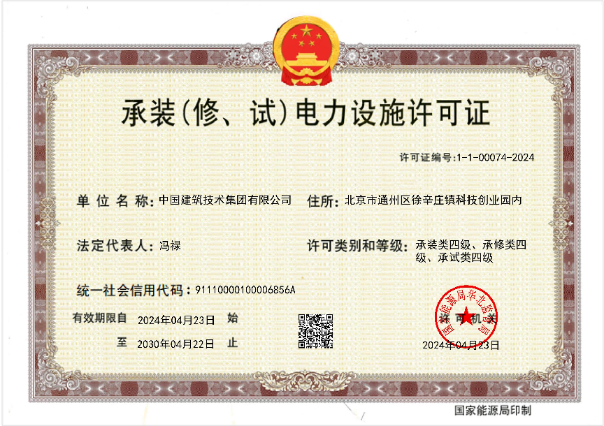 中國建技喜獲電力、環(huán)保、承裝(修、試)三項(xiàng)資質(zhì)