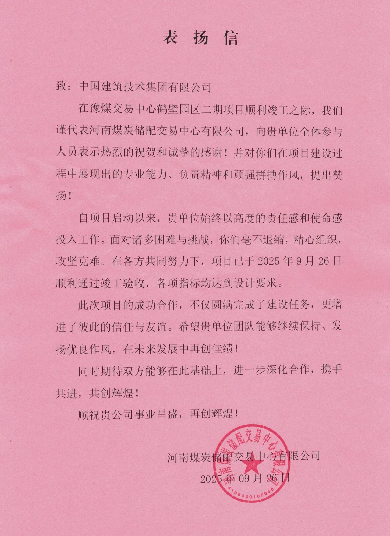 建設過程中,集團公司領導親臨指導,項目團隊頂風冒雪、晝夜奮戰(zhàn),高效推進項目進程,圓滿完成各節(jié)點目標,建設單位發(fā)來表揚信,贏得業(yè)主與政府贊譽,盡顯央企擔當。此次項目竣工,標志著中國建筑技術集團在煤炭及倉儲物流工程建設領域實現(xiàn)新突破,為區(qū)域能源基礎設施升級添上了濃墨重彩的一筆。