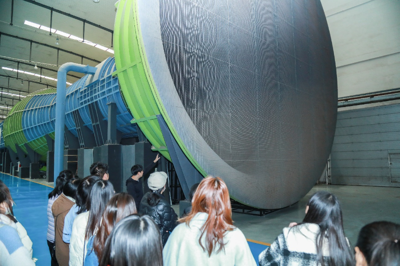 進(jìn)入實(shí)驗(yàn)室,首先映入眼簾的是藍(lán)綠相間的巨大“喇叭”,也是今天的“主角”——建筑風(fēng)洞?!按孙L(fēng)洞長96.5米,是直流下吹式大氣邊界層風(fēng)洞,此風(fēng)洞可以進(jìn)行多項(xiàng)科學(xué)試驗(yàn),為保證建筑的安全性和舒適性提供強(qiáng)大的‘后盾’?!痹谘υ┦康膸ьI(lǐng)下,參觀人員來到“喇叭口”了解風(fēng)洞動(dòng)力段的運(yùn)行原理,近距離看到風(fēng)扇葉片的構(gòu)造。沿著風(fēng)洞,接著來到中間的穩(wěn)定段,參觀人員深入了解風(fēng)洞內(nèi)部蜂窩器和阻尼網(wǎng)的構(gòu)造和重要作用。經(jīng)過風(fēng)洞的兩個(gè)實(shí)驗(yàn)段,最后來到擴(kuò)張段,在這里風(fēng)可以以更低的速度被排出。在專家的講解下,風(fēng)洞每一段構(gòu)造的科學(xué)秘密被逐漸揭開,參觀人員感受到建筑安全背后“科技屏障”的力量。