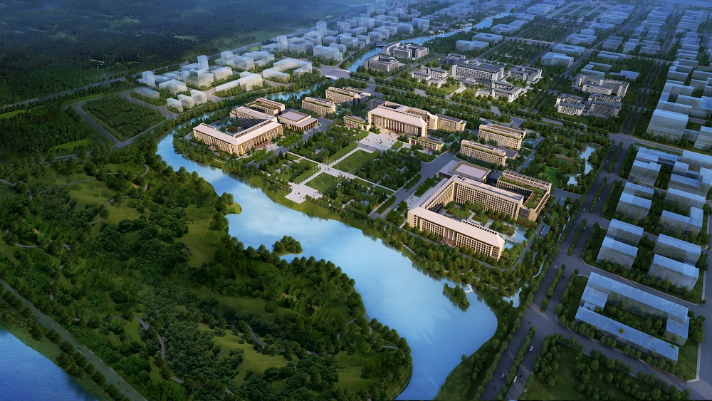 該項(xiàng)目位于北京城市副中心行政辦公區(qū)的核心區(qū)域,在長安街的東延長線上,運(yùn)潮減河與北運(yùn)河之間,將成為北京中心城區(qū)功能疏解的重要承接地。行政辦公區(qū)景觀結(jié)構(gòu)為:一條生態(tài)軸貫穿南北,由豐字溝水系和建筑公共綠地組成環(huán)抱行政辦公核心區(qū)的生態(tài)圍合,整體形成全區(qū)山水結(jié)構(gòu)與自然式的園林景觀。